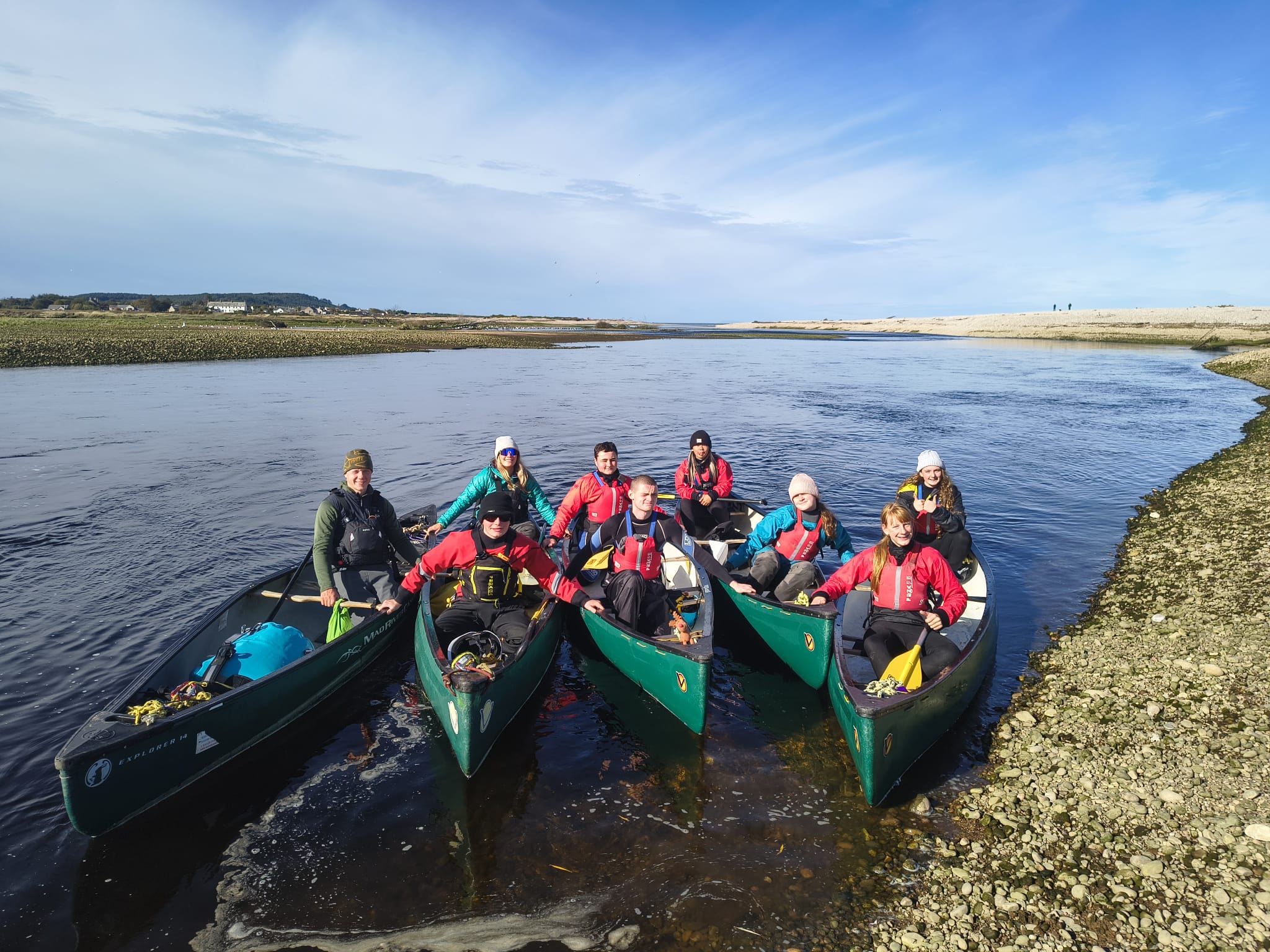 The final day was a short paddle to Spey Bay — the end of the river, but not the end of the experience. There were cheers, photos, and a quick dip in the sea before heading home.